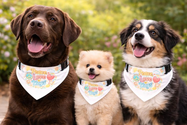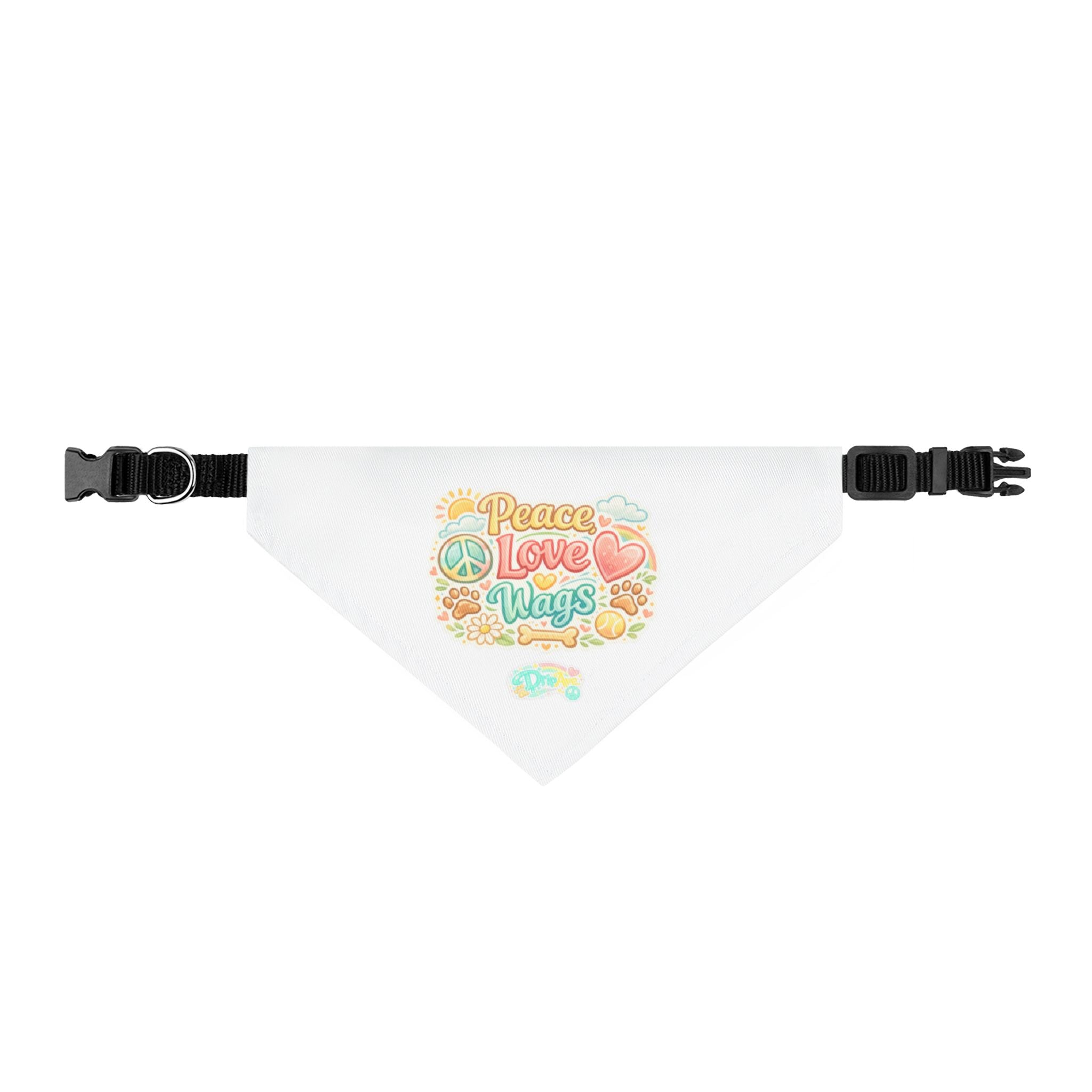 Clip-on Pet Bandana — "Peace Love Wags" Retro Floral Dog Accessory