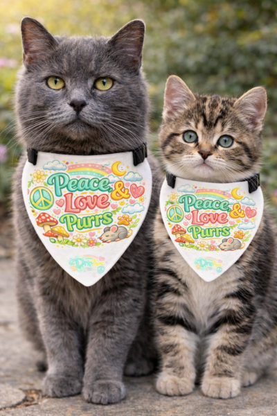 Clip-on Pet Bandana — ‘Peace, Love & Purrs’ Cute Rainbow Cat Accessory